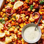 Once the vegetables are tender, remove from the oven and set aside. Serve warm with lemon-ginger yogurt sauce, and enjoy!